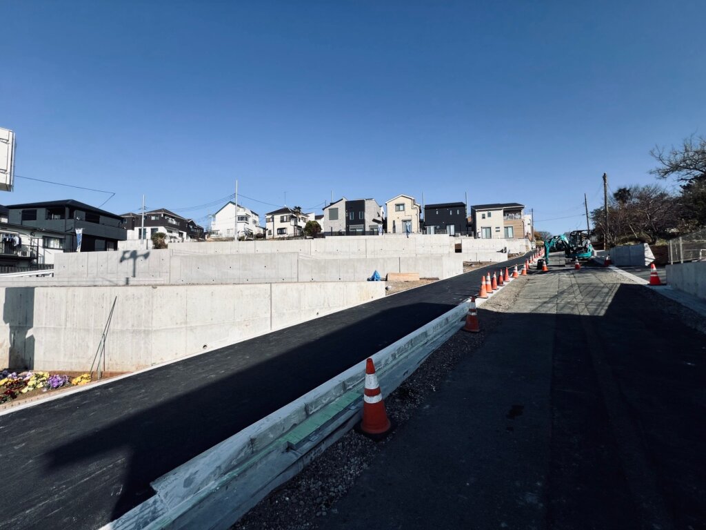 区画の工事はほぼ終わり、現在は歩道・道路の工事がすすんでいます♪