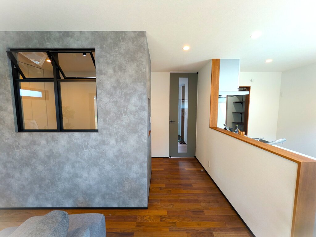 お家探し、されてますか?どんな場所で、どんな色で、どんなお部屋ですか? 左手に見えますのが、スタディスペースに設けましたデコ窓 正面に見えますのが、KAMIYAのハイドア 右手のキッチン奥に見え隠れしてますのが、パントリ こだわりは宝物