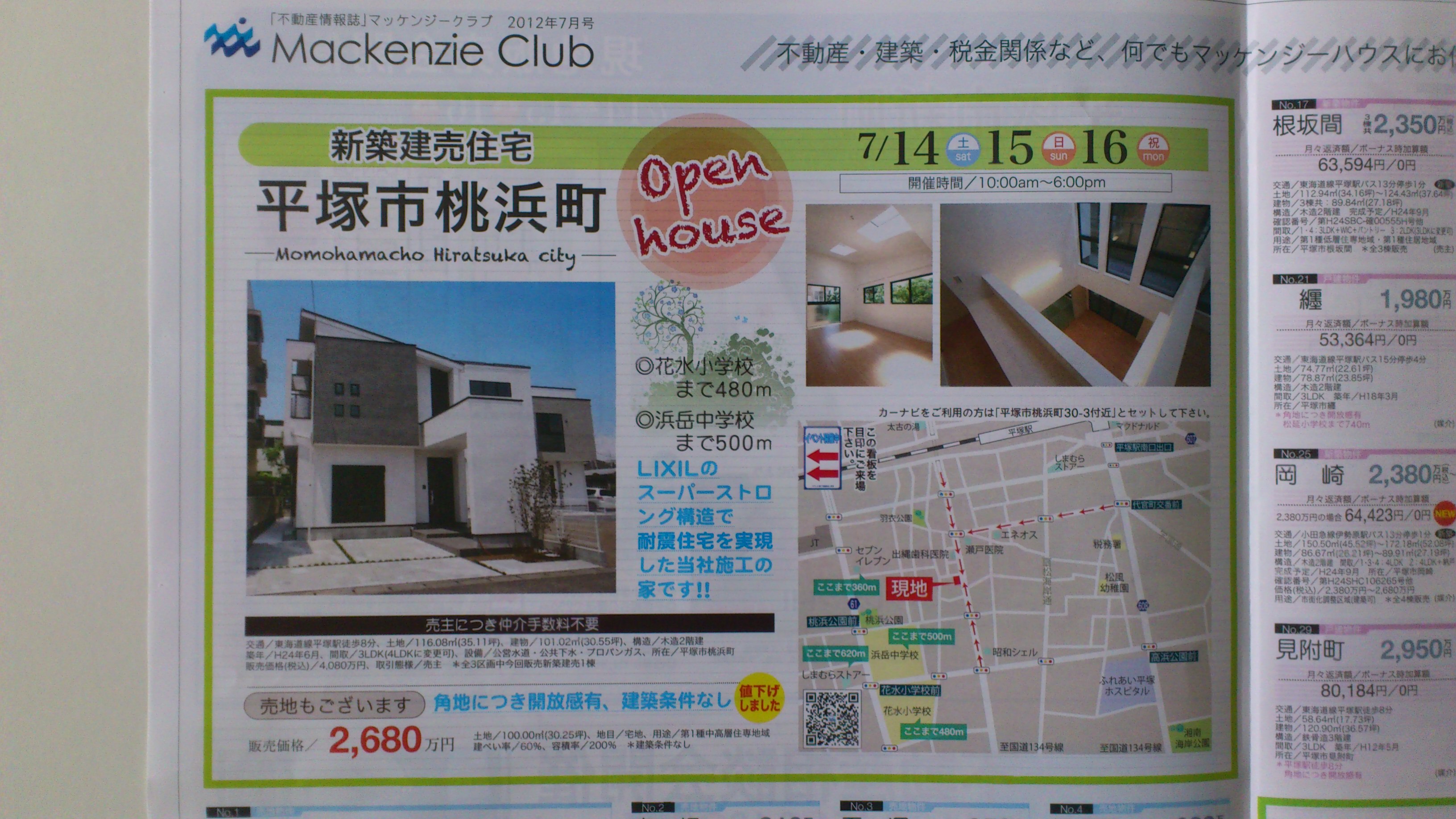 HOME >平塚支店の不動産 >マッケンジーブログ【平塚支店】 >3現場同時イベント開催!! 3現場同時イベント開催!! 2012年7月12日 カテゴリー / 不動産ブログ 先日は平塚市の七夕祭りにより、平塚本店前が通行止めとなるため お留守にしておりました。 もし、ご連絡・お問い合わせなどいただいた方がいらっしゃいましたら この場をかりてお詫び申し上げます。 誠に申し訳ございませんでした。 さて、今日は今週末3連休のイベントのお知らせです!! 3現場同時で開催いたします!! また、ご来場いただいたお客様には 前回に引き続き、大好評の特典もご用意しておりますので お気軽にお立ち寄りください!! 平塚支店のTOPに戻る 平塚市の不動産はお任せください MEMBER REGISTRATION 新規会員様大募集中! ★一般公開 / 1,475物件 ★会員限定 / 2,647物件 他社では見る事ができないマッケンジーハウス限定の プレミアム物件32件 どこよりも早く未公開物件や広告不可物件をご覧いただけます。会員登録は無料ですのでお気軽にご利用ください! 会員登録する ログインする 無料のプレミアム会員制度を導入しており、圧倒的な情報スピードでお客様にマッチングする物件情報がきっと見つかります MEMBER REGISTRATION 新規会員様大募集中! どこよりも早く未公開物件や広告不可物件をご覧いただけます。会員登録は無料ですのでお気軽にご利用ください! ★一般公開 / 1,475物件 ★会員限定 / 2,647物件 他社では見る事ができないマッケンジーハウス限定の プレミアム物件32件 会員登録する ログインする 無料のプレミアム会員制度を導入しており、圧倒的な情報スピードでお客様にマッチングする物件情報がきっと見つかります