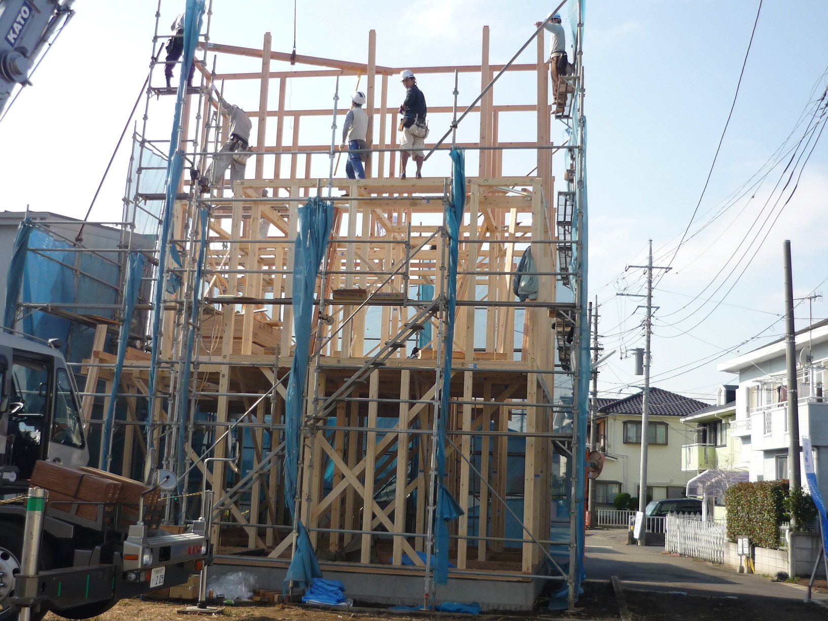 朝からスタートした棟上げも順調に進みましてお昼前位には
