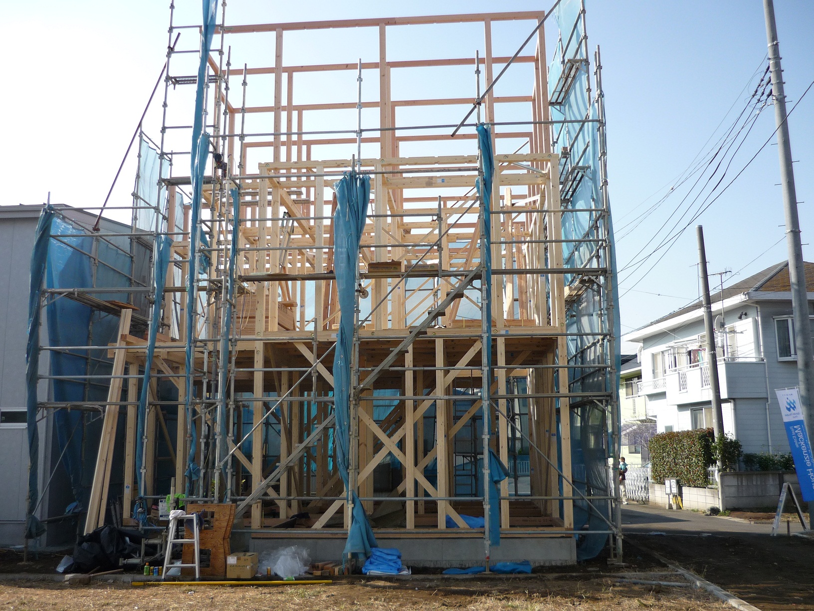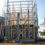 現在は骨組みの状況ですがこれから木工事が進みサッシ関係がはいり