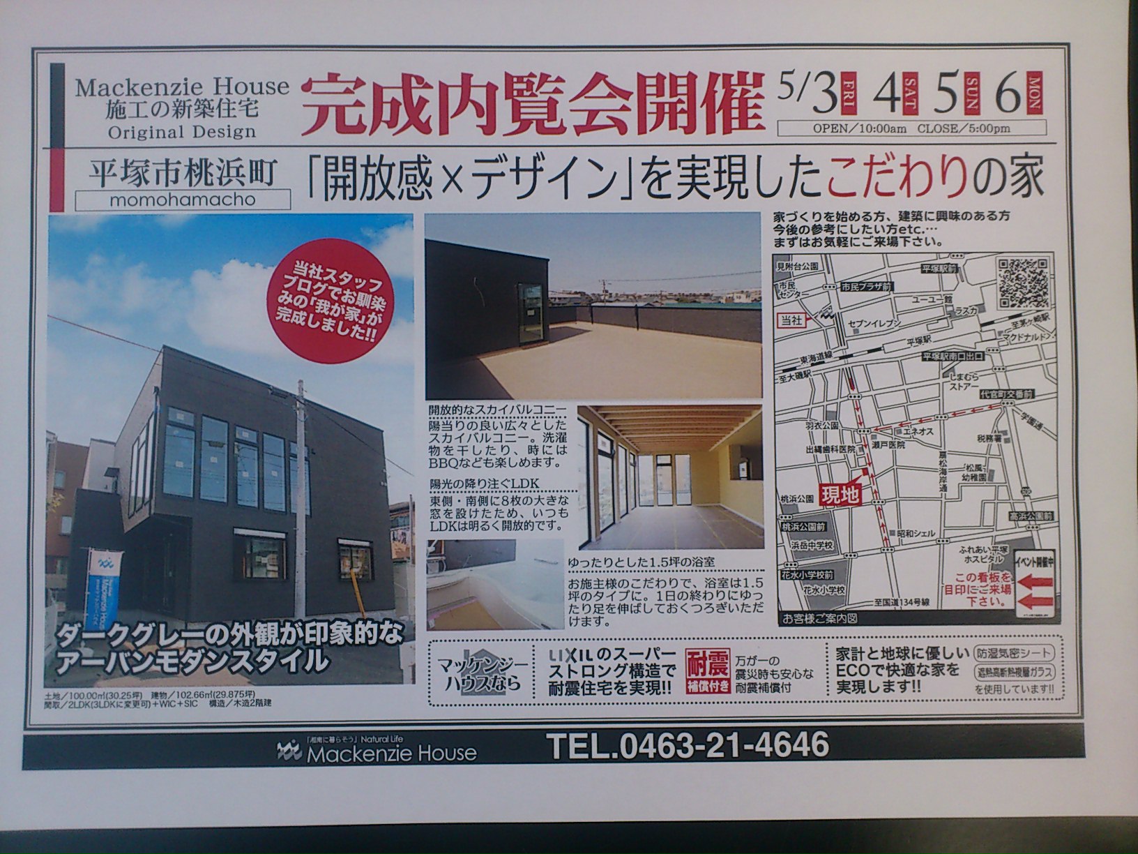 平塚本店のゴールデンウィーク!! 2013年5月4日 カテゴリー / 不動産ブログ 皆様、ゴールデンウィークはいかがお過ごしでしょうか? 平塚本店では2現場同時内覧会を開催しております!! 本日もたくさんのお客様にお越しいただきました!! 誠にありがとうございました。 平塚市桃浜町の建物は、当ブログでも工事の経過を詳しく掲載してきましたが、 とってもオシャレな仕上がりになりました!! 平塚市横内では3棟同時に違う仕上がりをご覧いただけます!! 是非、実際の出来上がりを体感してください!! 5月6日(月)まで開催してますっ!!!