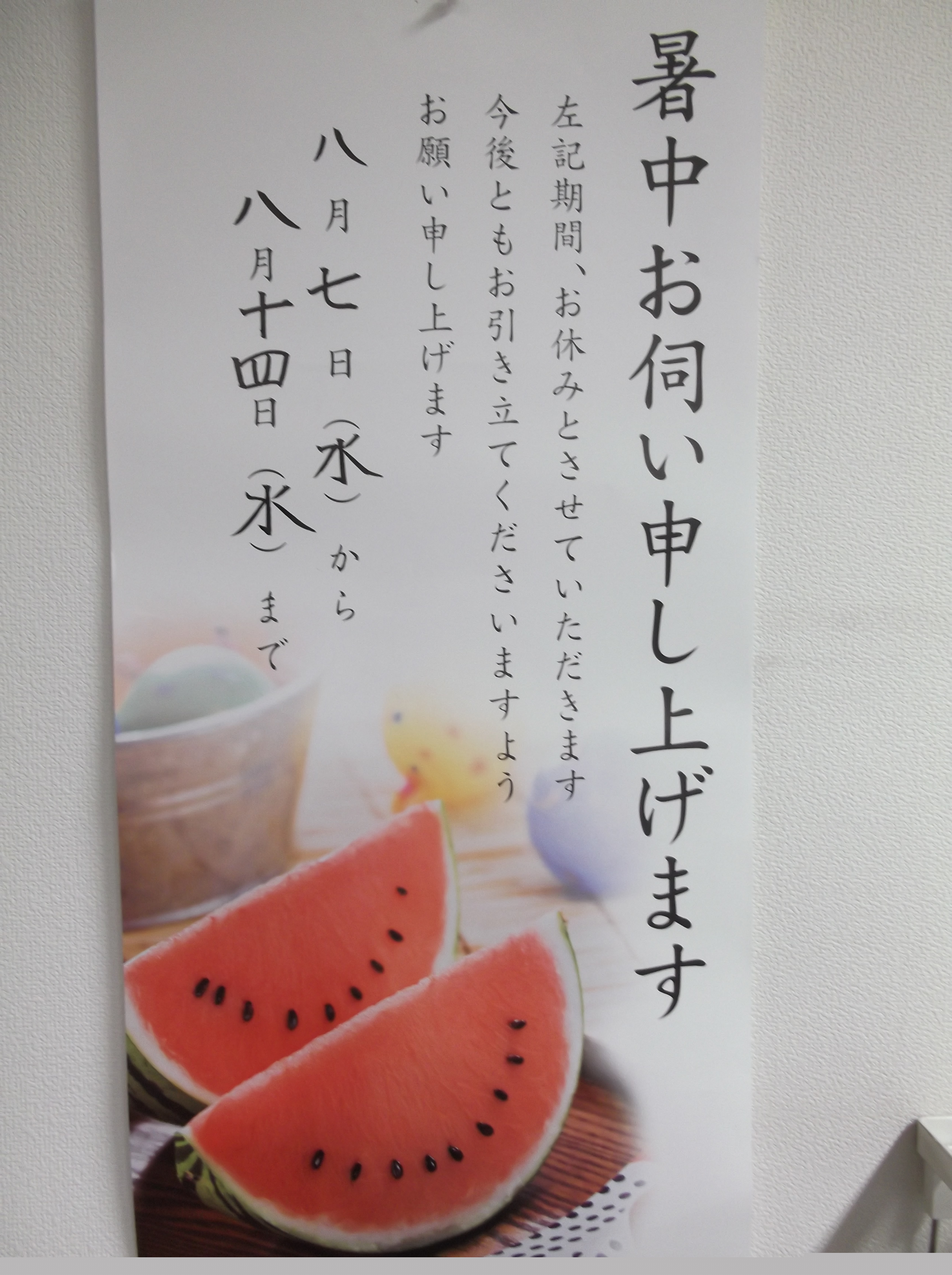 明日8月7日(水)~14日(水)まで夏季休暇とさせて頂きます。