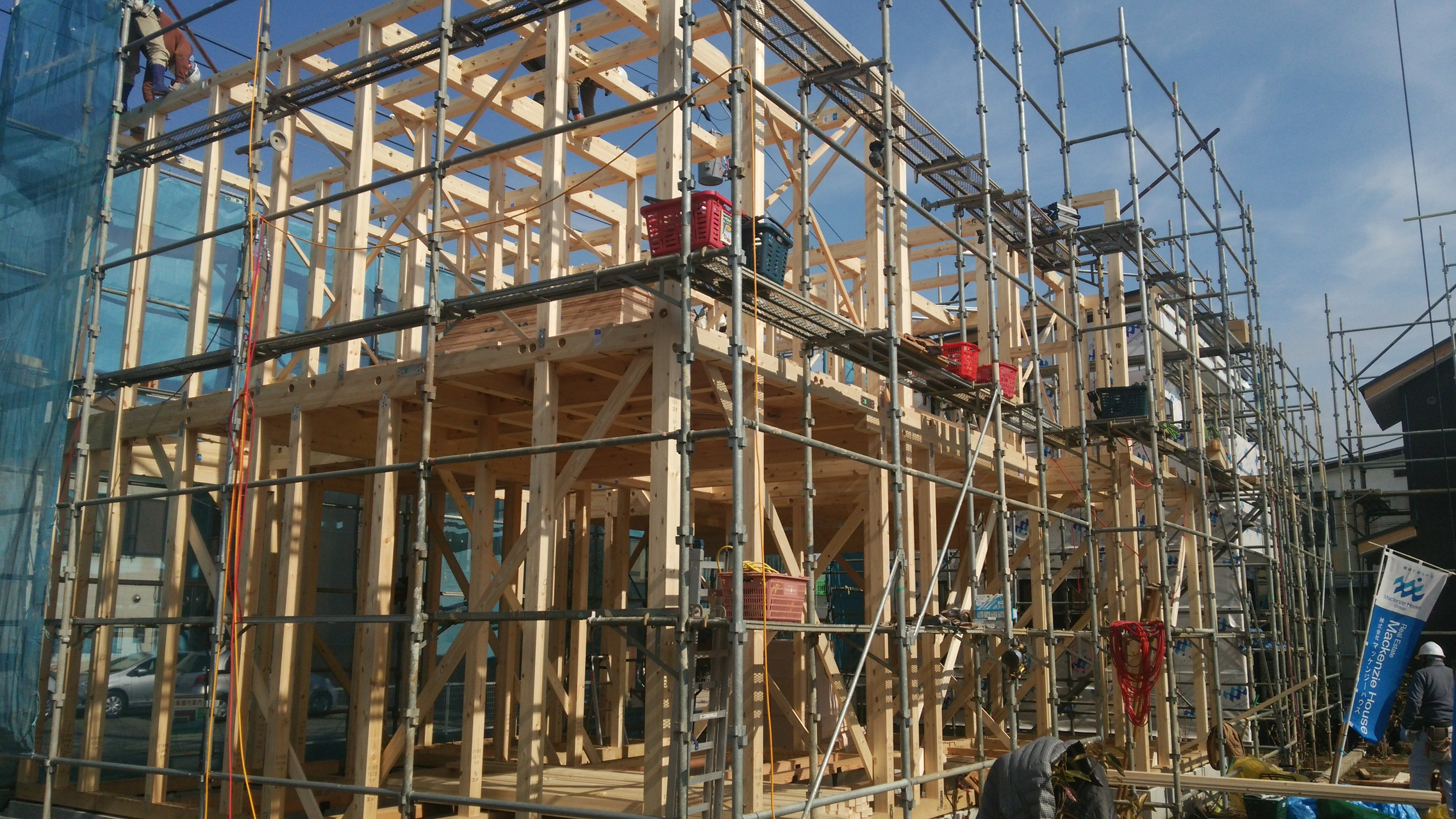 四之宮建売住宅 上棟致しました。 2015年2月7日 カテゴリー / 不動産ブログ いつもマッケンジーハウス平塚本店のブログをご覧の皆様こんばんは!! 本日、四之宮開発分譲地内で2棟同時に上棟致しました。 朝、大工さんが現地に集合し2棟に分かれ重機も到着し大工さんの指示のもと 重機が動き資材を運んで手早く大工さんが組み上げを行っておりました。 お昼ぐらいにはほとんど形になっており夕方位には屋根まで掛った状態になりました。 同分譲地内で完成物件や施工中の物件も御座いますのでご興味の方是非四之宮現地に足を運んで 頂ければと思います。