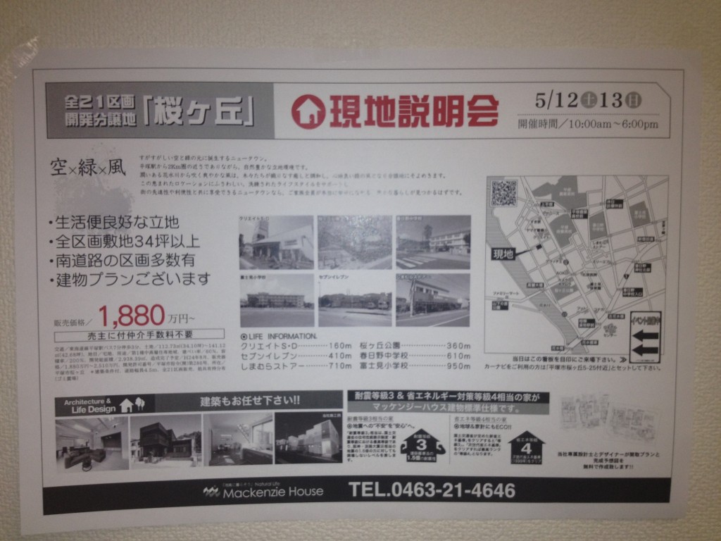 弊社のHPをご覧いただいている皆様今晩は(; ・`д・´) 今回は今週末の現地説明会のお知らせです。 G.Wに引き続き桜ケ丘にて現地説明会を行います。 こちらの物件はご好評頂いていて、既にご予約したいというお声も いくつ … 今週末はヽ(^o^)丿