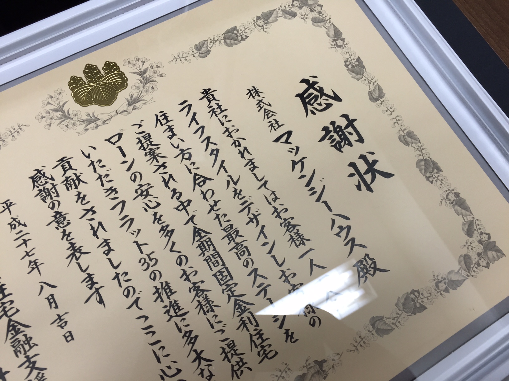 ブログをご覧の 皆様こんばんは! 暑い日が続きますが、どうやら明日くらいから少しすずしくなるようですよ! さて、本日はこんな写真を・・・ 住宅金融支援機構(フラット35)から感謝状をいただきました~ヽ(´▽`)/! 金融 … 感謝状をいただきましたヽ(´▽`)/!