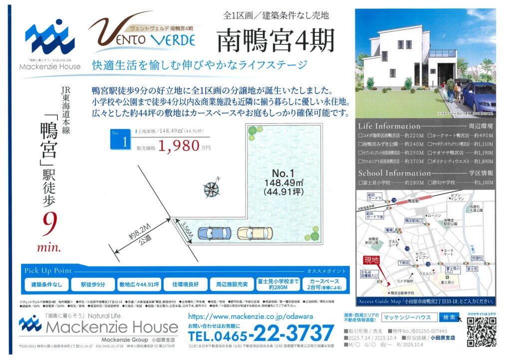 弊社売主物件、小田原市南鴨宮2丁目売地、絶賛販売中です!!